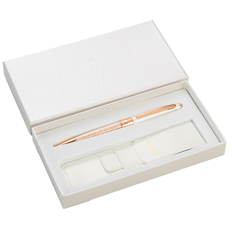 Едва ли има дама, която не би искала да притежава някое от тези бижута, защото всяка една химикалка от колекцията Crystal Pen събира в себе си малки кристали, които ще блестят неустоимо във всяка нежна ръка. Дизайнерите ги представят в елегантен силует, допълнен от розово и жълто злато или сребро, а разнообразието от цветове – бяло, синьо, червено, розово и лилаво, подчертава тяхната индивидуалност и стил.- Химикалка в подаръчна кутия Pierre Cardin